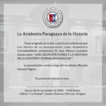 La Academia Paraguaya de la Historia tiene el honor de anunciar la incorporación del Dr. Juan Marcos González García como Académico Correspondiente, en el marco de un acto académico que se llevará a cabo el jueves 20 de noviembre de 2025, a las 19:00 horas, en el Edificio “La Piedad” (Andrés Barbero 230 esquina Artigas). […]